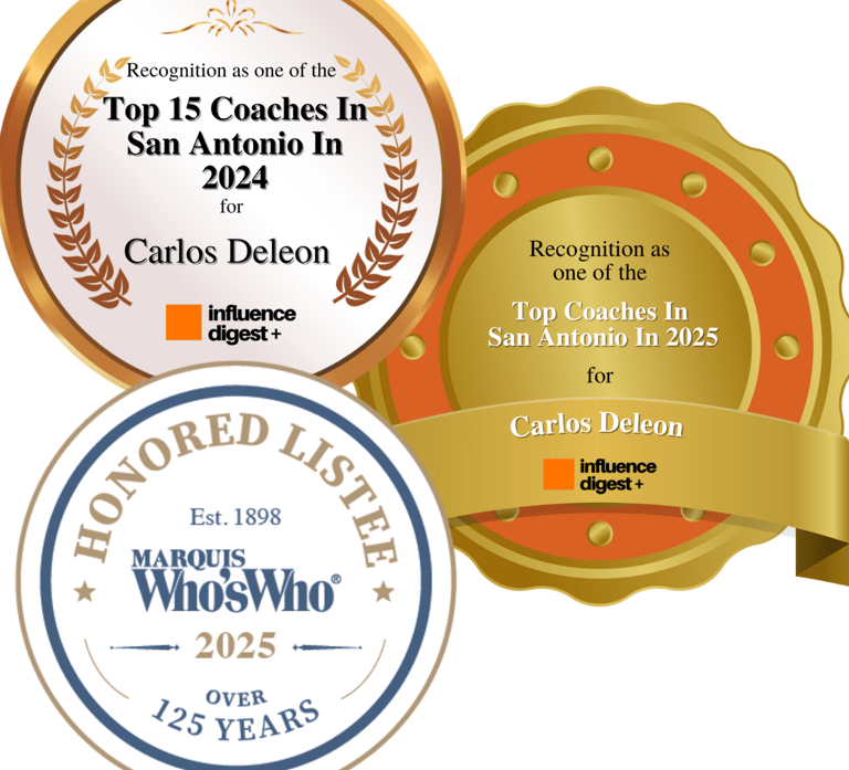 Recognized for Impact, Honored for Excellence Leadership is about service, and I’m grateful mine has been recognized. Proud to be named one of San Antonio’s Top 15 Coaches by Influence Digest Media for two consecutive years (2024 & 2025), and honored as a Marquis Who’s Who in America Listee in 2025. These recognitions reflect the heart of my mission: helping leaders rise with clarity, purpose, and real results.